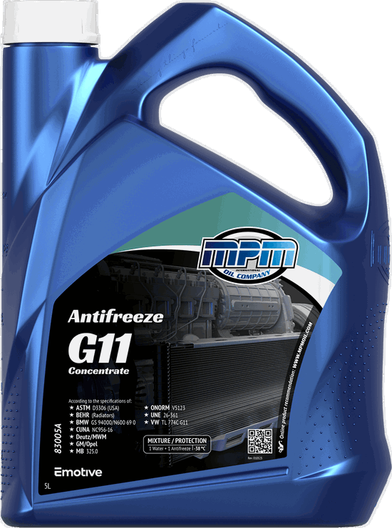 Nemrznúca zmes obsahujúca silikát VW TL 774C / G11, je nemrznúca zmes najvyššej kvality a môže sa používať po celý rok v chladiacich systémoch benzínových a dieselových motorov. Vďaka špeciálnemu balíku prísad a vysoko kvalitnému monoetylénglykolu je tento nemrznúci prostriedok MPM VW TL 774C / G11 jedným z najkvalitnejších na trhu. Tento nemrznúca zmes by sa mala pred použitím zriediť s vodou v odporúčanom pomere.